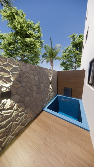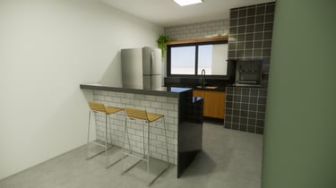 Piscina, Garagem, Terraço, Sala, Cozinha Ampla, Área de serviço, Quintal e Banheiro social.