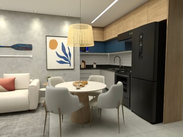 Temos opções com 3 Quartos (sendo 1 suíte), Banheiro social, Varanda e Pré-instalação para ar-condicionado split.